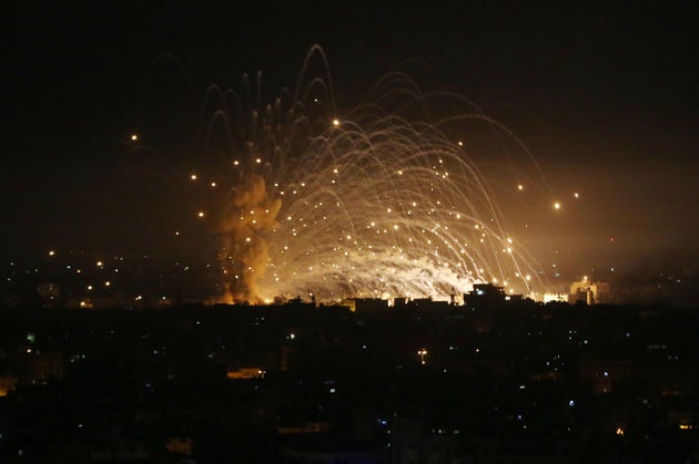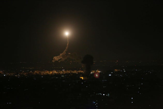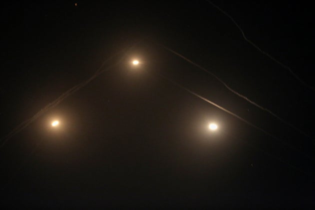 The skies of Tel Aviv tonight as the Iron Dome missiles are shot into the sky to blowup the incoming rockets from Gaza. Just surreal. pic.twitter.com/zXgAaU5tF6