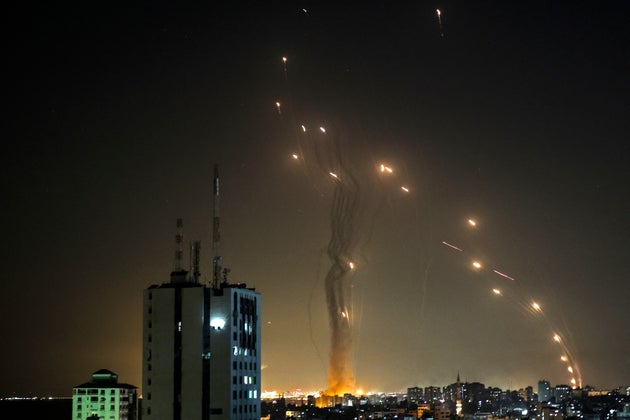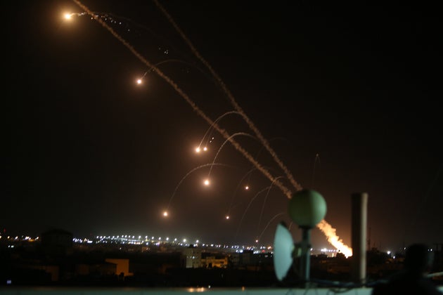 VIDEO: Dozens of rockets fired from Gaza are intercepted by Israel's Iron Dome air defense system over the Tel Aviv metropolitan area. pic.twitter.com/DbKUkpCp6u