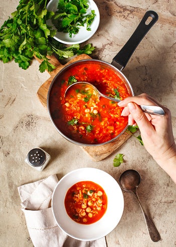 Αφήνουμε για 15 με 20 λεπτά να μαγειρευτεί, έως ότου το ρύζι μαλακώσει, ενώ κάθε τόσο ανακατεύουμε και προσθέτουμε λίγο νερό, εφόσον χρειάζεται.