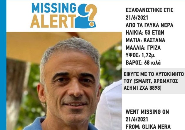 Σημειώνεται, ότι ο 53χρονος εξαφανίστηκε την Δευτέρα, ενώ είχε αφήσει σημείωμα στον αδελφό του με το οποίο τον καθιστούσε κληρονόμο του. Η εξαφάνισή του δηλώθηκε στην Αστυνομία, ενώ ενεργοποιήθηκε o μηχανισμός «missing alert» από το «Χαμόγελο του Παιδιού».