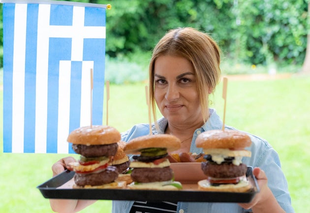 Για το Euro μαγειρικής, σχεδίασε ένα μπέργκερ μουσακά! «Έψησα στο μπάρμπεκιου μπιφτέκι από αρνίσιο κιμά, όπως και τα λαχανικά μου. Καπνιστές μελιτζάνες, κολοκυθάκια, πατάτες baby και μία κρύα κρέμα μπεσαμέλ, συνθέτουν το μπέργκερ, που συνοδεύεται από φέτα μπουγιουρντί επίσης ψημένη στη φωτιά», λέει η 45χρονη σεφ, που έχει στείλει ήδη στη διοργανώτρια εταιρεία το 45λεπτο βίντεό της.