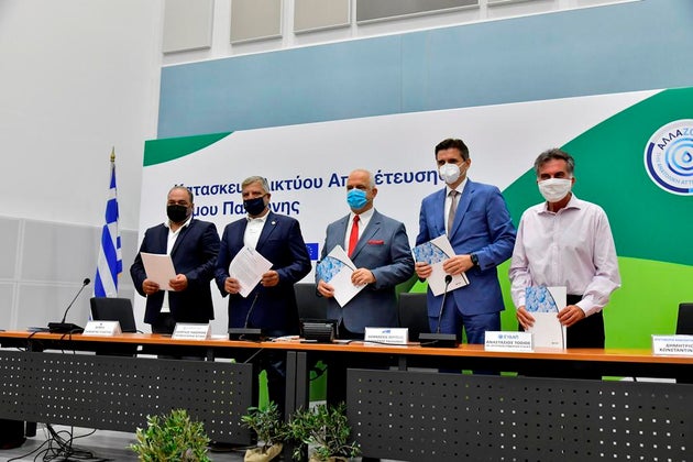 Σήμερα Πέμπτη 15 Ιουλίου 2021, υπογράφηκε η σύμβαση κατασκευής του έργου, από τον Αναπληρωτή Διευθύνοντα Σύμβουλο της ΕΥΔΑΠ, Αναστάσιο Τόσιο και τους εκπρόσωπους της αναδόχου κοινοπραξίας «Χ. Δ. ΚΩΝΣΤΑΝΤΙΝΙΔΗΣ – ΕΛΤΕΡΓΑ ΑΕ» , Δημήτριο Κωνσταντινίδη και Παρασκευά Τσάμπρα, σε ειδική τελετή που πραγματοποιήθηκε στο Δημαρχείο Παλλήνης, παρουσία του Περιφερειάρχη Αττικής, Γιώργου Πατούλη, με οικοδεσπότη τον Δήμαρχο Παλλήνης, Αθανάσιο Ζούτσο.