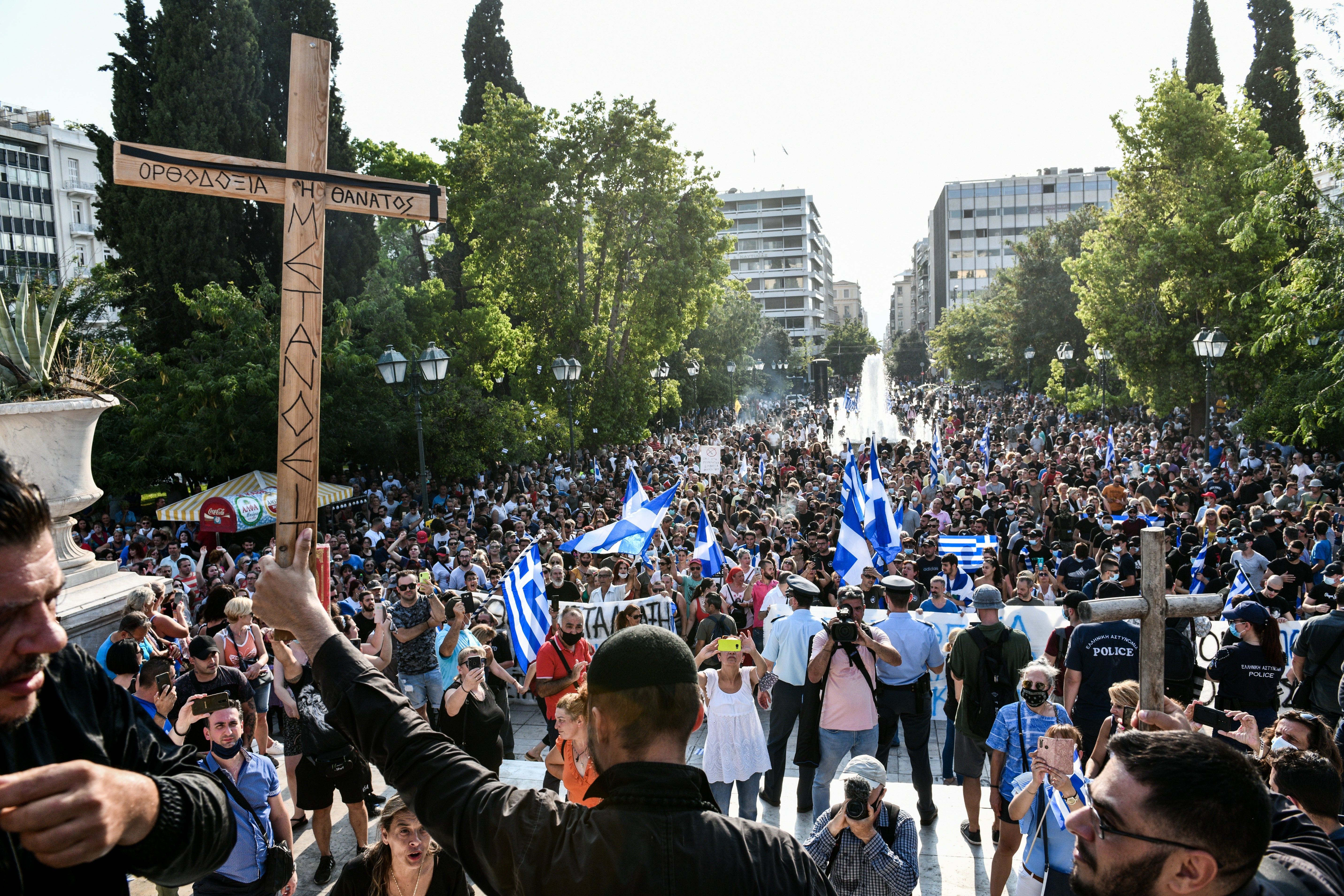 Όσον αφορά τη συγκέντρωση στο Σύνταγμα, των ανετιεμβολιαστών η ΓΑΔΑ σημειώνει στην ανακοίνωσή της: «Στις 18:00, μετά από κάλεσμα μέσω σελίδων κοινωνικής δικτύωσης διαφόρων οργανώσεων, συλλόγων και σωματείων για συγκέντρωση, με κεντρικό σύνθημα ”όλοι στον αγώνα για ελευθερία και αξιοπρέπεια- όχι στα δικτατορικά μέτρα της κυβέρνησης-ενάντια στο διαχωρισμό των πολιτών”, πραγματοποιήθηκε συνάθροιση περίπου 3.500 ατόμων στο χώρο της Πλατείας Συντάγματος.