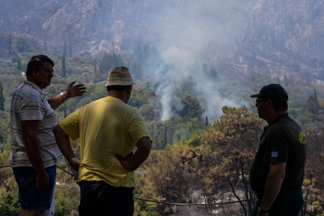 Ισχυρές πυροσβεστικές δυνάμεις, που είτε εδρεύουν στο νησί είτε έφθασαν εκεί από την υπόλοιπη Ελλάδα, μαζί με εθελοντές βρίσκονται στο χώρο των καμένων εκτάσεων προκειμένου να αποφευχθούν αναζωπυρώσεις.