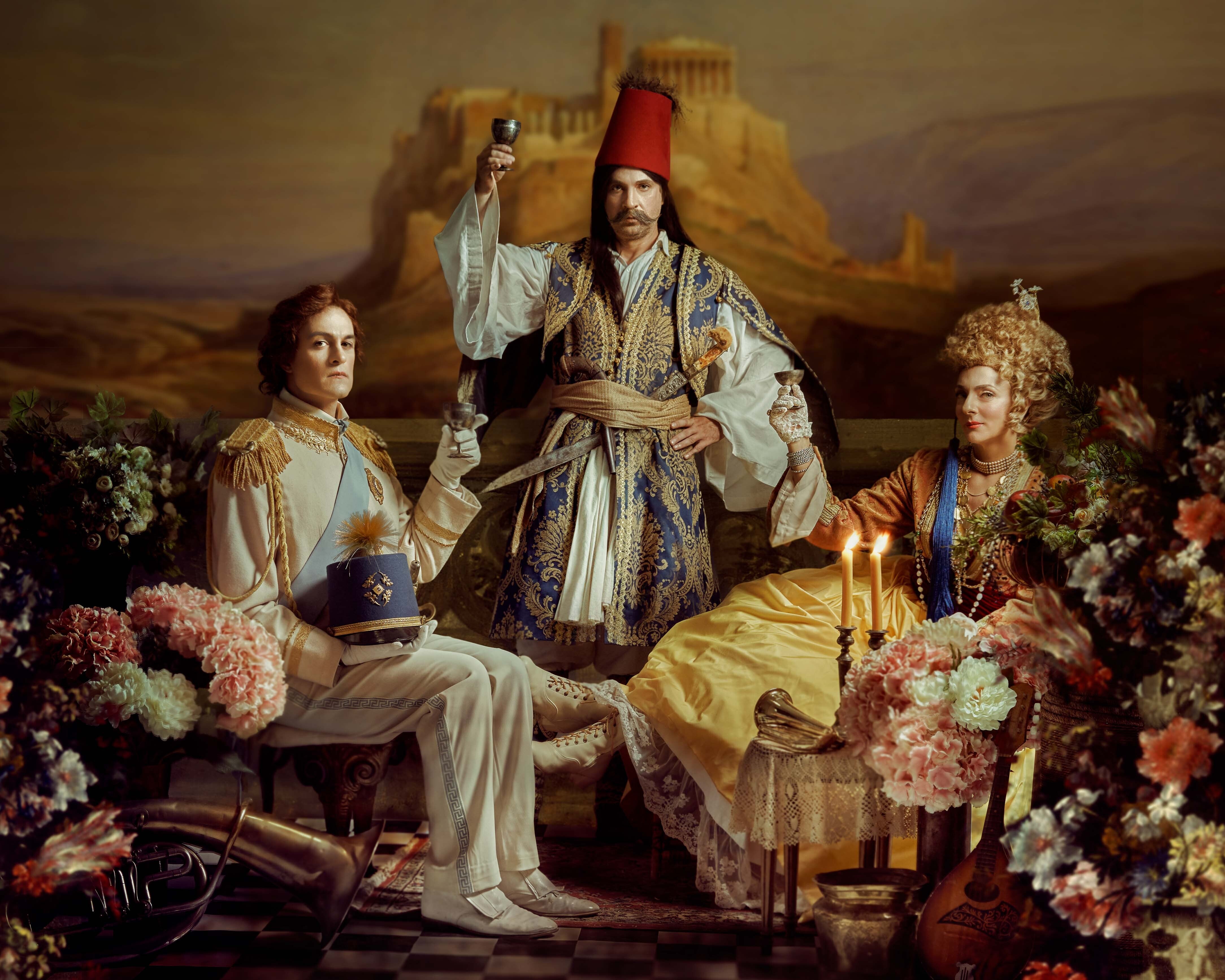 Τα πρόσωπα Χάρης Φραγκούλης (Απόλλων), Σταμάτης Κραουνάκης (Σιληνός), Αμαλία Μουτούση (Κυλλήνη), Steve Katona (Ερμής)