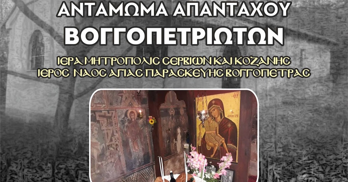 Tο «αντάμωμα» των απανταχού Βογγοπετριωτών θα πραγματοποιηθεί την Κυριακή 25 Ιουλίου στο εκκλησάκι της Αγίας Παρασκευής, όπου από τις 8 το πρωί θα τελεστούν Θεία Λειτουργία και Αγιασμός. μετά το τέλος των Ακολουθιών θα προσφερθούν εδέσματα και αναψυκτικά.