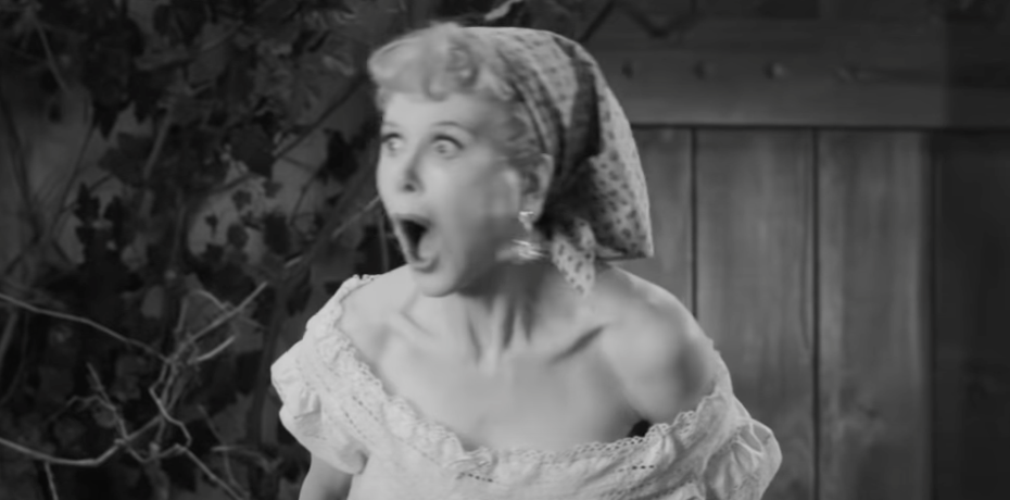 Αντί να αποπνέει την ανάλαφρη ατμόσφαιρα όπως όταν η Λούσι πατούσε σταφύλια και έτρωγε λαίμαργα ζαχαρωτά, των σκηνών που έκαναν τη Λουσίλ Μπολ σταρ, το σποτ της νέας ταινίας του Άαρον Σόρκιν για την αγαπημένη κωμικό έχει έναν πολύ πιο σκοτεινό τόνο - ξεκινώντας με μια δραματική εκδοχή του τραγουδιού που ακουγόταν στους τίτλους της σειράς«I Love Lucy».