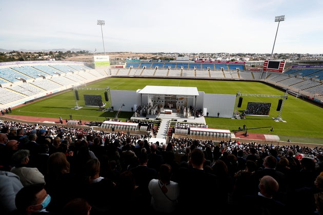 Λίγο μετά τις 10:00 ο Πάπας Φραγκίσκος προσήλθε στο στάδιο ΓΣΠ, όπου τέλεσε Θεία Λειτουργία παρουσία χιλιάδων πιστών, αλλά και εκπροσώπων της πολιτικής και πολιτειακής ηγεσίας της Κύπρου, στέλνοντας παράλληλα μηνύματα αδελφοσύνης και ενότητας ανά το παγκόσμιο.
