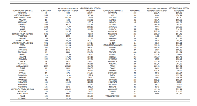 Με βάση τα επιβεβαιωμένα κρούσματα των τελευταίων 7 ημερών, 381