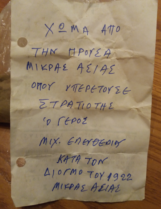 «Θέλησα να κάνω ένα ξεκαθάρισμα όσων είχε η μητέρα μου, για να δω ποια πράγματα μπορώ να χαρίσω, ποια να αποθηκεύσω και τι μπορεί να μην είναι χρήσιμο. Άνοιξα το εικονοστάσι και βρήκα το σακουλάκι με το χώμα. Δεν κατάλαβα τι ήταν, όμως έτσι όπως έπιασα το σακουλάκι κατάλαβα ότι κάτι έχει μέσα. Όταν διάβασα ότι επρόκειτο για χώμα από την Προύσα, πραγματικά δεν μπορώ να εξηγήσω αυτό που ένιωσα. Δεν ήξερα ότι υπάρχει αυτό το ενθύμιο, δεν μας είχε μιλήσει ποτέ η μητέρα μου. Η αλήθεια είναι ότι γνώριζα από παιδί πόσο δεμένοι ήταν με τον τόπο που άφησαν οι παππούδες και οι γιαγιάδες μας, αλλά ποτέ δεν θα μπορούσα να πιστέψω ότι ανάμεσα σε όσα θεωρούσε η μητέρα μου ιερά και τα είχε μέσα σε αυτό το εικονοστάσι, ήταν και το χώμα που είχε μαζέψει πριν φύγει από την πατρίδα του, ο πατέρας της», λέει μιλώντας στο ΑΠΕ-ΜΠΕ, ο κ.Κόκκινος, κάτοικος της Νέας Αλικαρνασσού που είναι μια από τις περιοχές του Ηρακλείου, με έντονο προσφυγικό στοιχείο.