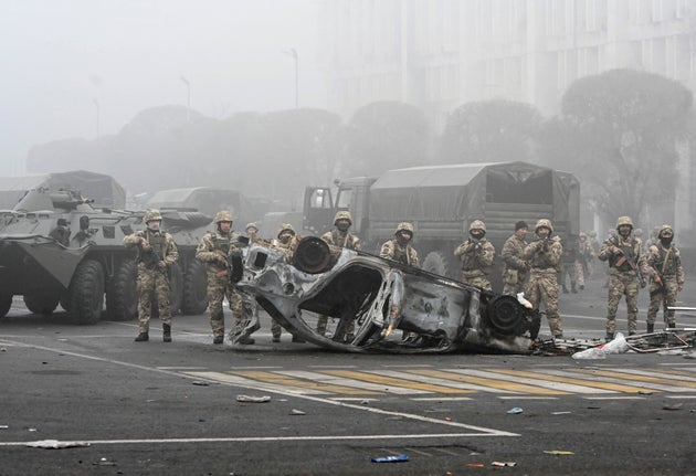 Μετά από μια νύχτα σφοδρών συγκρούσεων μεταξύ διαδηλωτών και στρατιωτών στους δρόμους, η προεδρική κατοικία στο Αλμάτι και το γραφείο του δημάρχου κάηκαν αμφότερα, ενώ καμένα και αναποδογυρισμένα αυτοκίνητα γέμισαν την πόλη, ανέφεραν δημοσιογράφοι του Reuters.