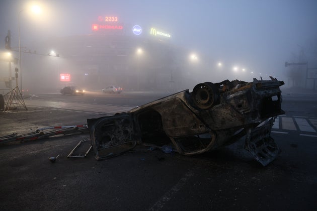 Η βία έχει επίκεντρο την οικονομική μητρόπολη του Καζακστάν, την Αλμάτι. Βίντεο από τα επεισόδια εικονίζουν τις δυνάμεις επιβολής της τάξης να χρησιμοποιούν χειροβομβίδες κρότου-λάμψης για να διαλύσουν διαδηλωτές, με φόντο καμένα αυτοκίνητα.