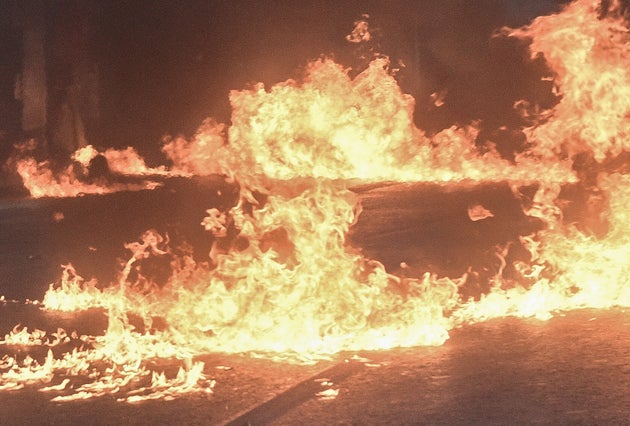 Άγνωστοι πέταξαν έξι μολότοφ, από τις οποίες προκλήθηκε φωτιά σε δημοτικό αυτοκίνητο που κάηκε ολοσχερώς και σημειώθηκαν φθορές στην είσοδο του δημαρχείου.