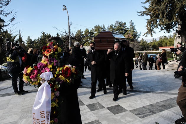 Οι αύλειοι χώροι του κοιμητηρίου ήταν γεμάτοι από στεφάνια. Μεταξύ άλλων, του πρωθυπουργού και της συζύγου του, Μαρέβας, του προέδρου της Βουλής, Κωνσταντίνου Τασούλα, του δημάρχου, Κώστα Μπακογιάννη, των οικογενειών Λάτση, Βαρδινογιάννη, αλλά και καλλιτεχνών όπως ο Γιάννης Μαρκόπουλος αλλά κι ο Βαγγέλης Παπαθανασίου που «συνόψισε» ίσως πολλά απ′ όσα ένιωθαν όσοι βρέθηκαν εκεί.