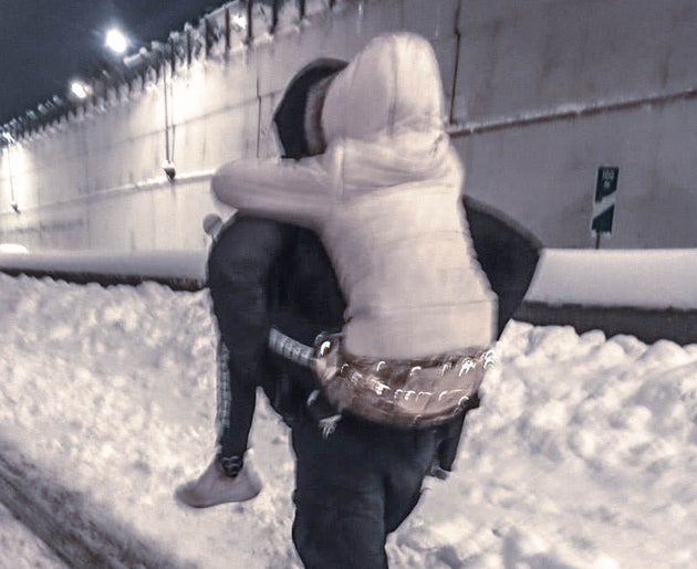 Η Πυροσβεστική είχε ερπυστριοφόρο όχημα που μπορούσε να κινηθεί παρόλο το ύψος του χιονιού. Προσέγγισε τον μπαμπά που είχε βγει στο δρόμο με το παιδάκι, τον πήρε από την Λ. Μαραθώνος και Μιλήση και τον μετέφεραν σε ένα βατό σημείο όπου δεν υπήρχε χιόνι. Από εκεί παρελήφθησαν από όχημα της ασφάλειας ώστε να το μεταφέρουν στο νοσοκομείο Παίδων.