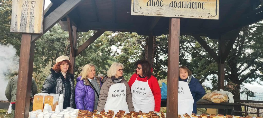 Στις γραφικές πλαγιές των Πιερίων, περίπου δύο χιλιόμετρα δεξιά από το δημοτικό στάδιο Βελβεντού, ο Δήμος Βελβεντού, το ΚΑΠΗ και εθελοντές πολίτες διατηρούν για ακόμη μία χρονιά ζωντανό ένα έθιμο που χάνεται στα βάθη του χρόνου, προσφέροντας περισσότερα από 150 κιλά λουκάνικα στους επισκέπτες.