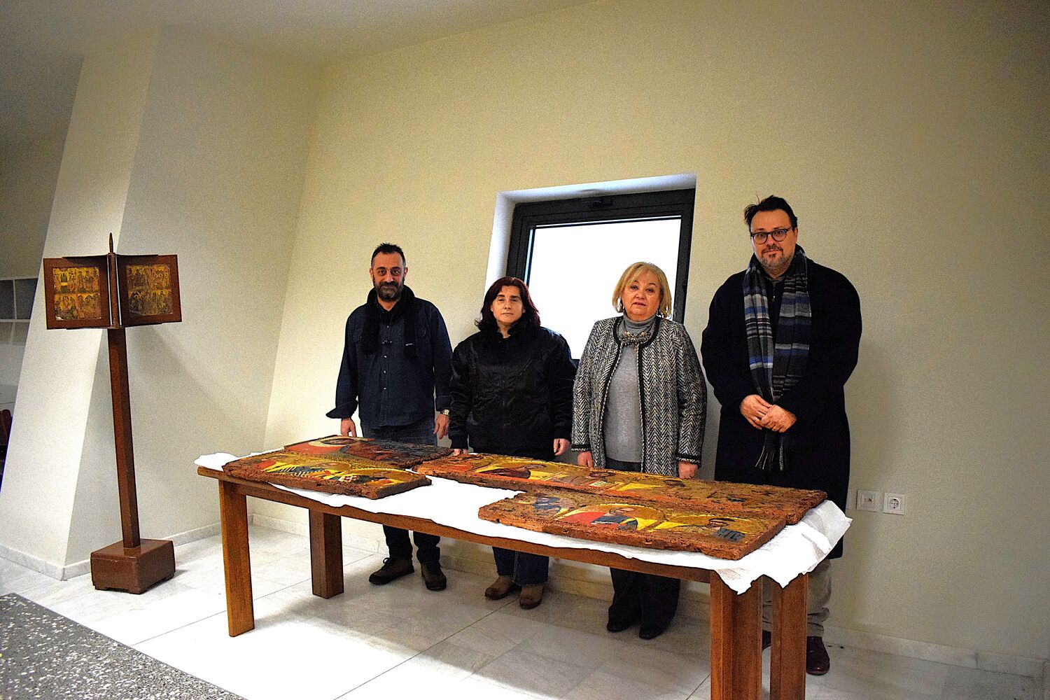 Τα κειμήλια παραδόθηκαν, στον Αντιδήμαρχο Αθλητισμού, Πολιτισμού και Βιβλιοθήκης, Γιάννη Ιωαννίδη και στη Βιβλιοθηκονόμο της Κοβενταρείου Δημοτικής Βιβλιοθήκης Κοζάνης, Ελένη Μαργαρίτη, από τον Αναπληρωτή Προϊστάμενο του Τμήματος Βυζαντινών και Μεταβυζαντινών Αρχαιοτήτων της Εφορείας Αρχαιοτήτων Κοζάνης, Θεοχάρη Τσάμπουρα.